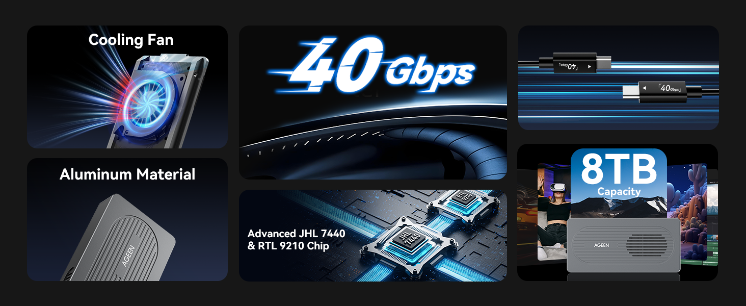 AGEEN 40Gbps M.2 NVMe SSD Enclosure with Cooling Fan